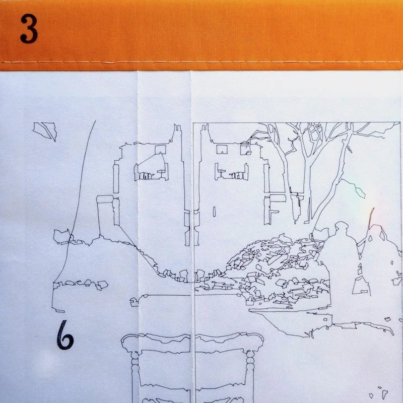 A quartet of folding drawings found their starting point in photographs of a fading Yorkshire barn. Slowly their linear patterns evolved, step-by-step, through acts of tracing, folding and re-outlining. Each pen-drawn plan attempts to chart a quiet process of visual enquiry - mapping a contemplative state from above and within.